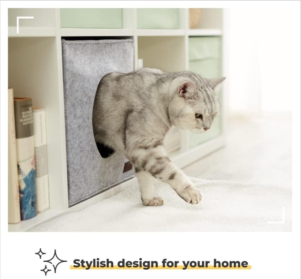• SPACE SAVING & SUITABLE FOR e.g. IKEA KALLAX & EXPEDIT SHELVES – Your living space remains ideally used thanks to the cat igloo beds for indoor cats, which perfectly fit the common IKEA shelves. Dimensions: 33x33x37cm. Entrance: 17.5cm diameter. This compact design makes it a great addition to your home without taking up too much space, ideal for a kitten house or indoor cat house.