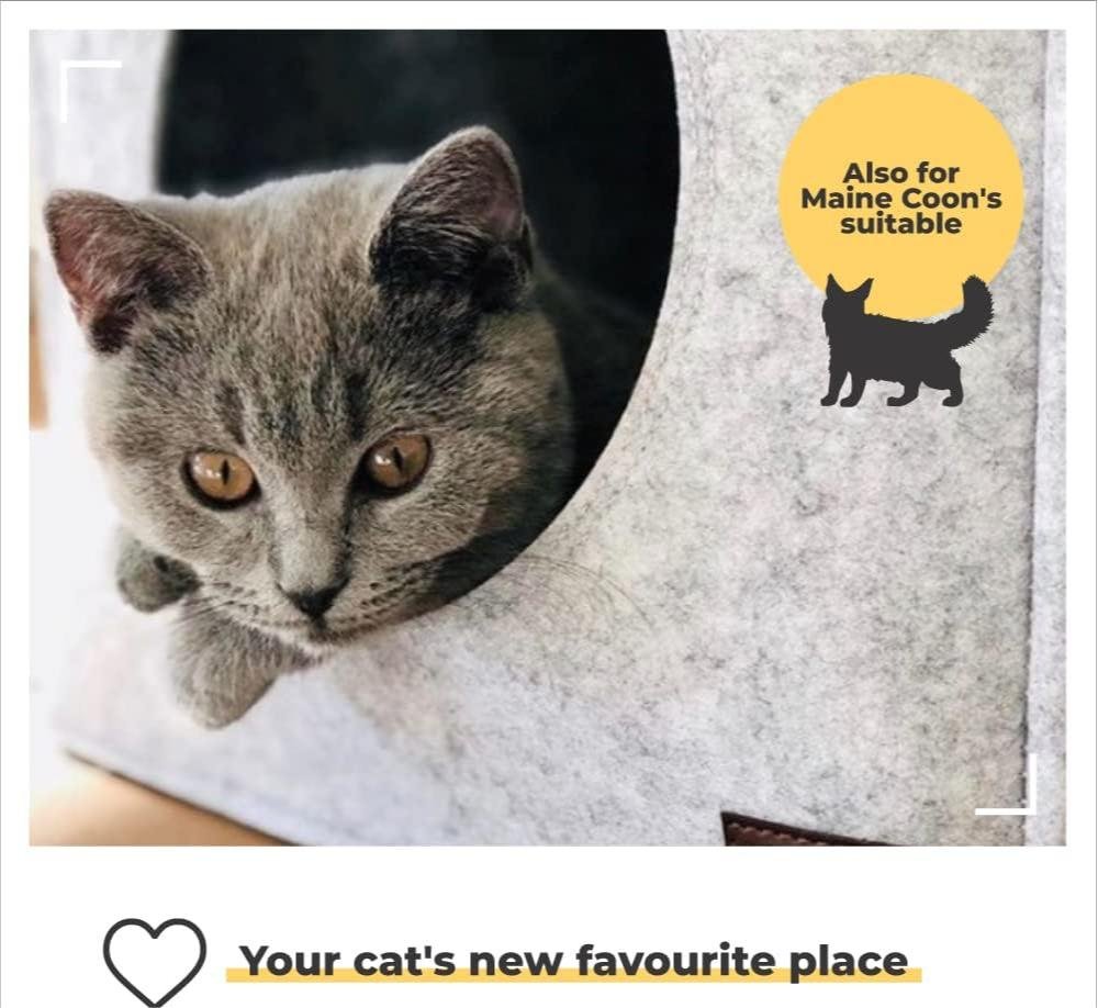 • HIGH QUALITY PROCESSING & MATERIAL – Fine polyester felt of the cat house indoor (no loose threads) material used and high-quality stitching. This ensures durability and longevity, making it a reliable animal shelter. The igloo cat bed and cat hut are crafted with care to provide the best cat shelter for your furry friend. It’s an excellent choice among cat caves & houses and cat hide options.